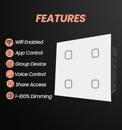 - Smart Home Control: Transform your home with the Howell 4 Gang Wi-Fi Smart Touch Switch. Control your lights and appliances from anywhere with your smartphone. Compliant with electrical appliances and safe to use with Fast pairing with new Wi-Fi + BLE module.