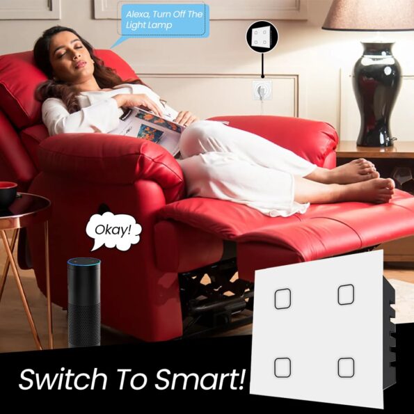 HOWELL Wi-Fi Smart Touch Switch 4 Gang with Alexa & Google Assistant